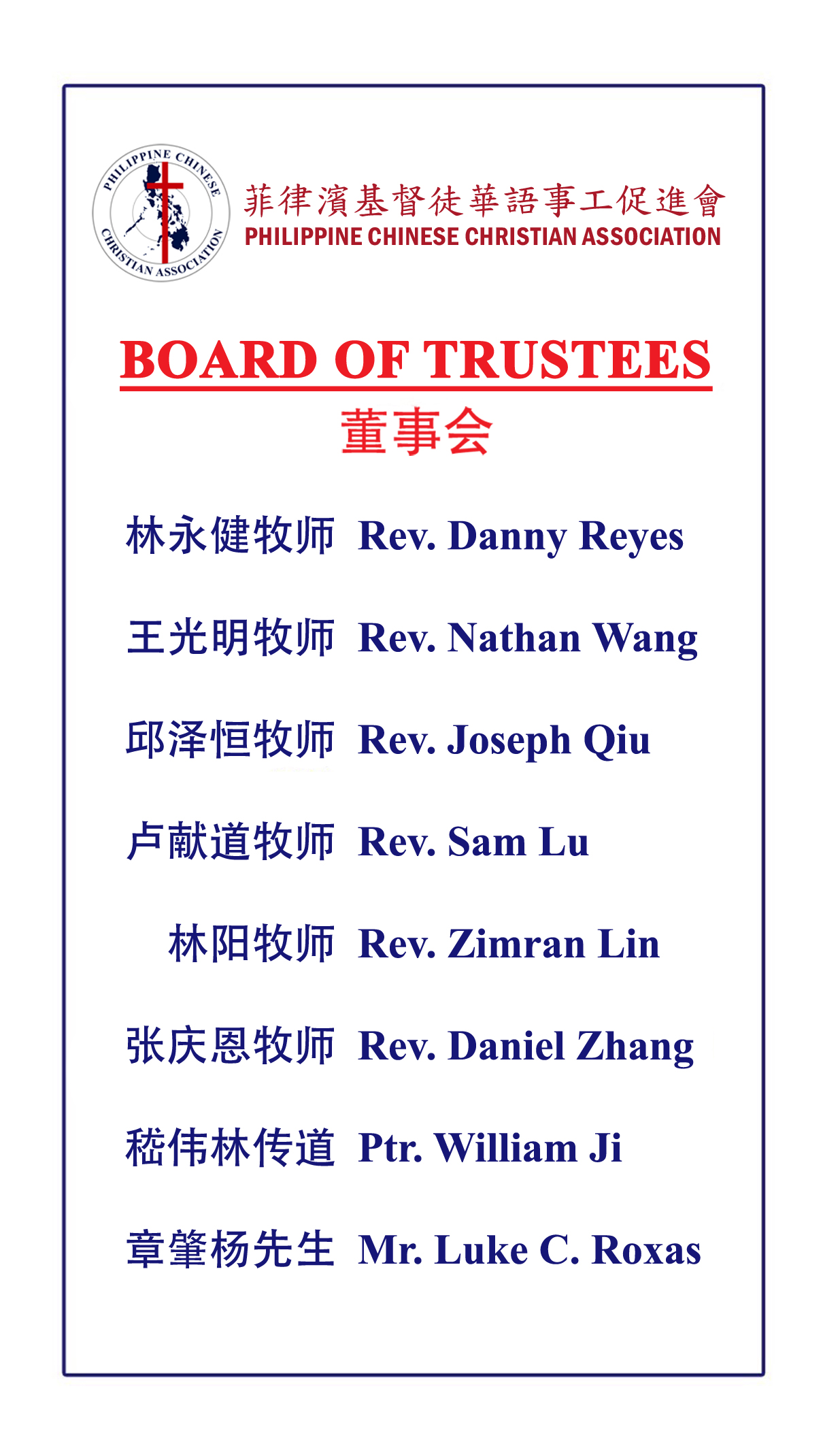 • (Toward Filipino-Chinese local churches) To promote inter-church fellowship and ministry among Filipino-Chinese Evangelical churches and groups.